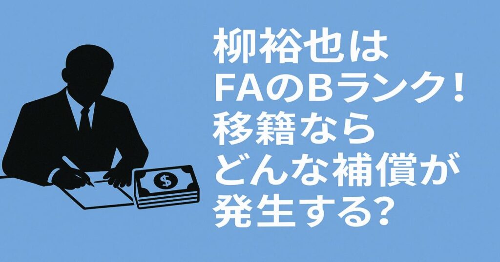 FAで移籍した場合、柳投手はBランクに分類されるため、獲得球団には「人的補償+金銭」あるいは「金銭のみ」の補償が発生します。