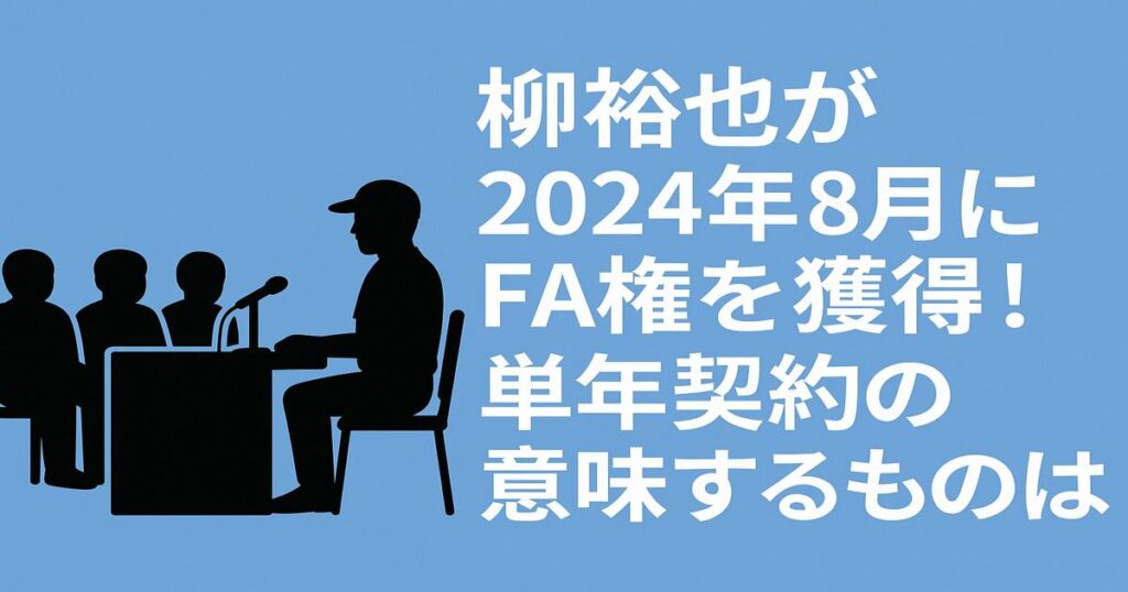 柳裕也投手は2024年8月に国内FA権を取得し、2025年シーズンを前に去就が注目されています。